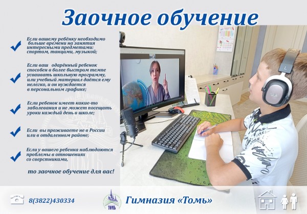ЧОУ гимназия «Томь» открывает запись учащихся 1-11 классов на заочное обучение с официальным зачислением в гимназию!