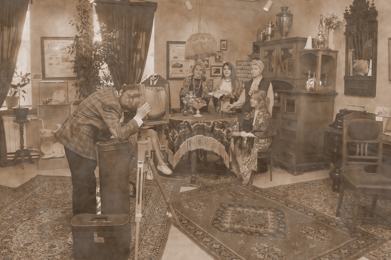В каждом шестикласснике живет артист. В интерьере экспозиции "Старый добрый Томск" Музея славянской мифологии прошла фотосессия (фотограф Ирина Рогозенко), на которой ребята "вели" торговые дела в лавке, принимали визитеров в купеческой гостиной, делали снимки в фотоателье, музицировали на старинном пианино, примеряли исторические костюмы, дополняли образы настоящими старинными аксессуарами. Жизнь города купцов и «задолженных им мещан» на короткий момент попробовали воссоздать юные дарования "Томи".