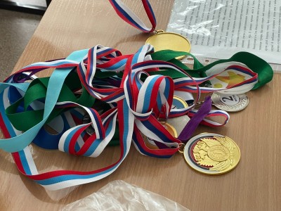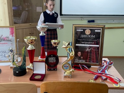 Участники конкурса представили свои портфолио, кубки и награды. Комиссия подводит итоги по критериям.