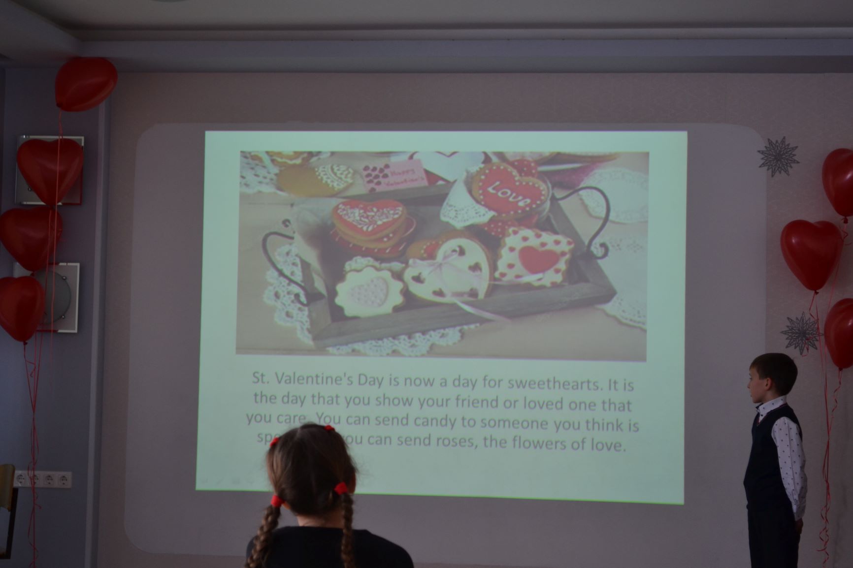 Учащиеся 5 класса подготовили очень интересные красочные презентации про празднование Дня Святого Валентина в разных странах и представили их ребятам 3 и 4 классов, а также на общем празднике для всех.